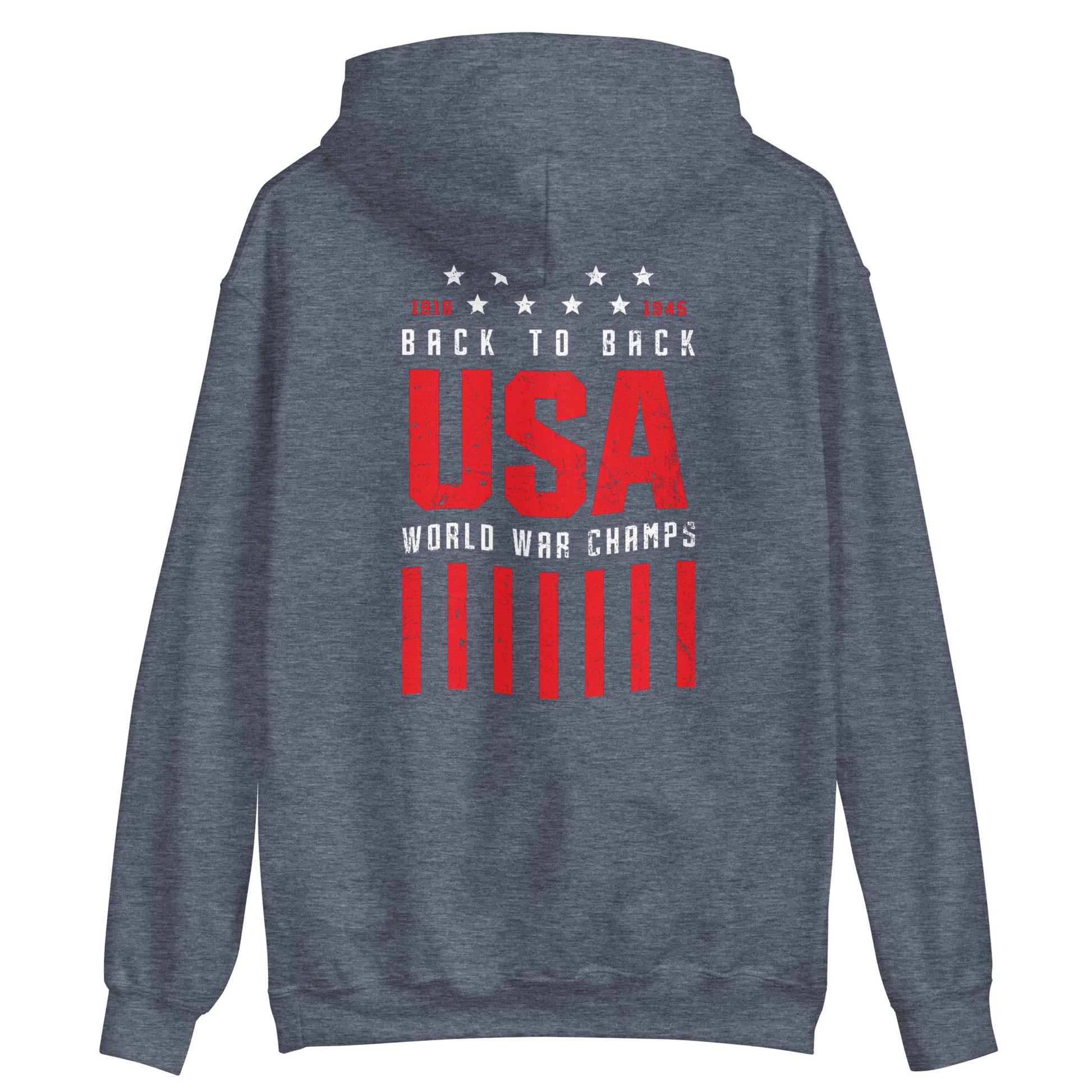 Join us in celebrating America's "Back to Back World War Champs" with this hoodie. It's a fun and distinctive way to honor the country's history while adding a touch of humor to your wardrobe. Grab yours today and wear it proudly as a testament to the nation's resilience and victory.