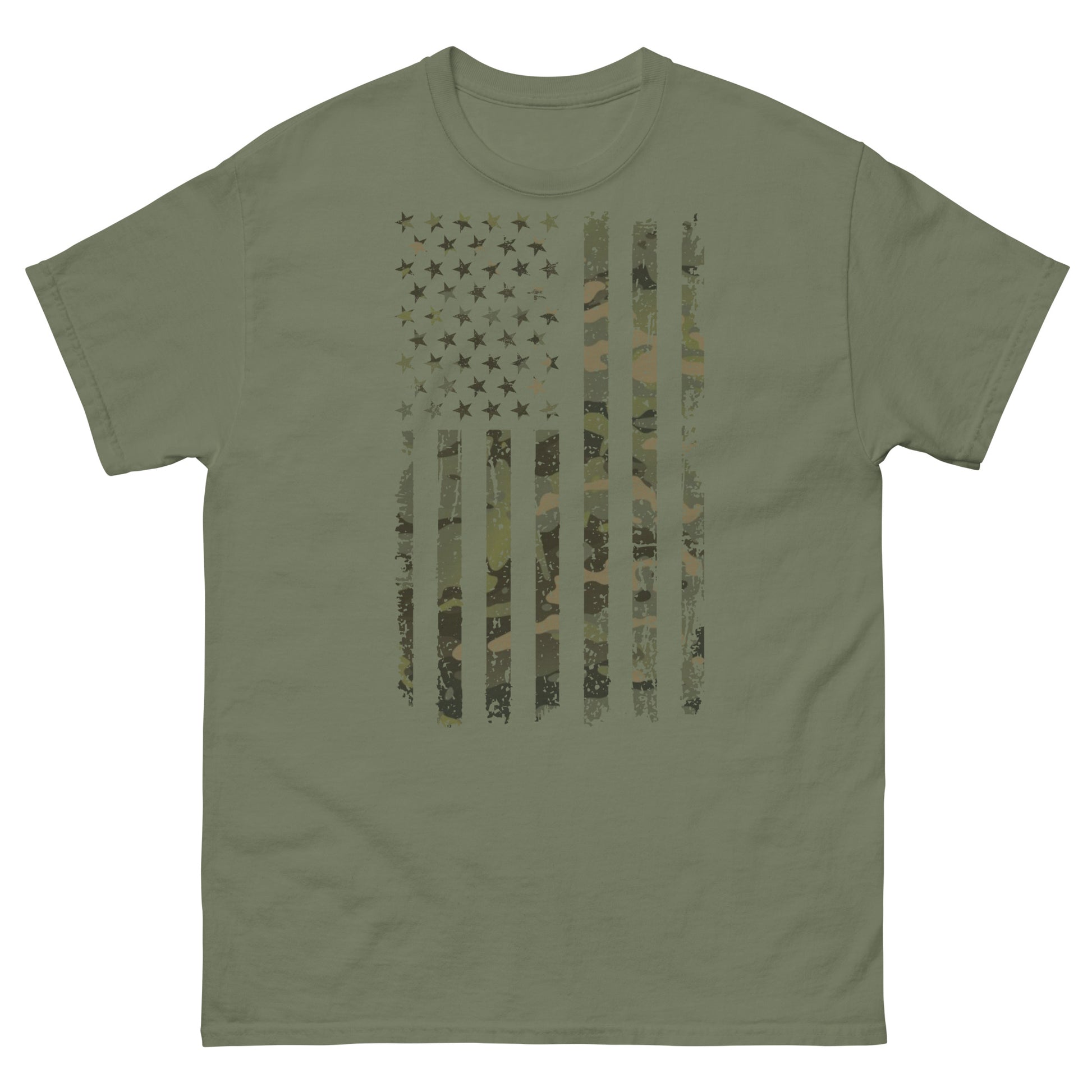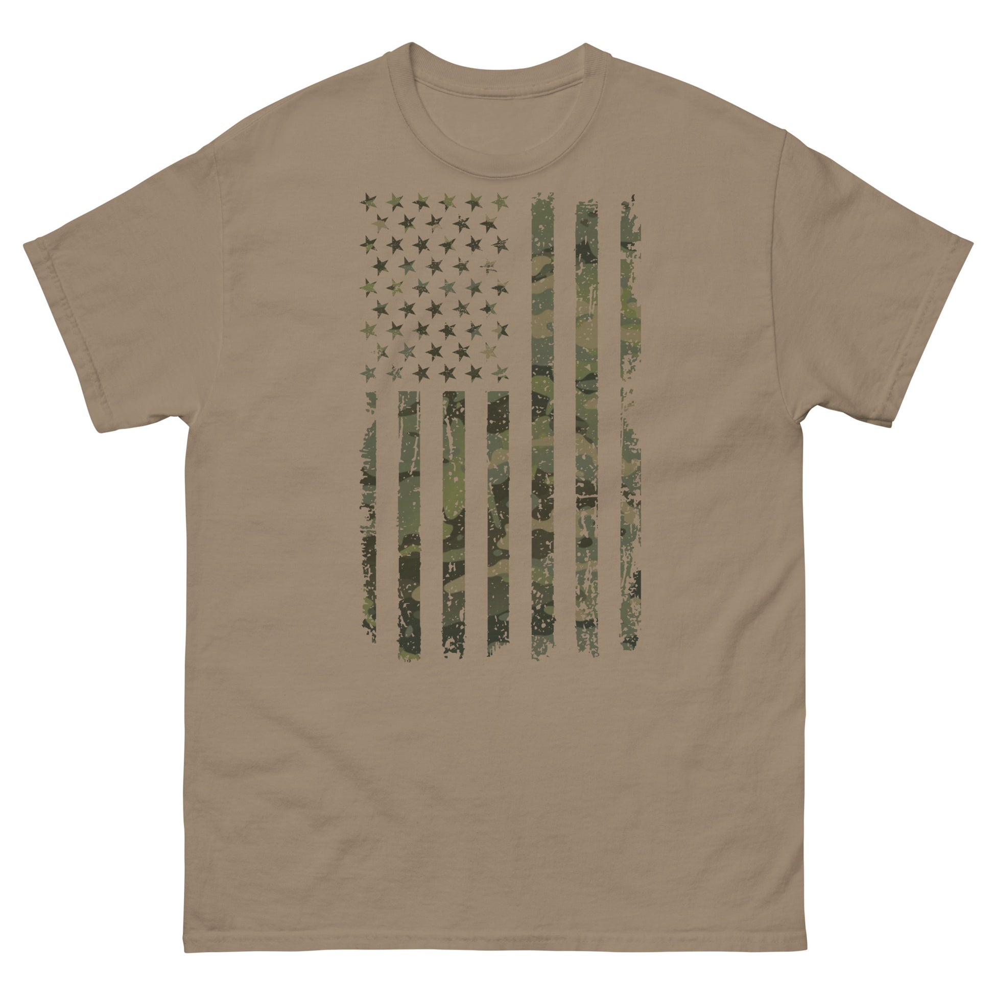 Premium Quality Fabric: Our "Camo Distressed Flag" T-shirt is crafted from top-tier materials, ensuring both comfort and longevity. It's designed to endure, just like the resilient spirit of America, while providing the ease you need for everyday wear.